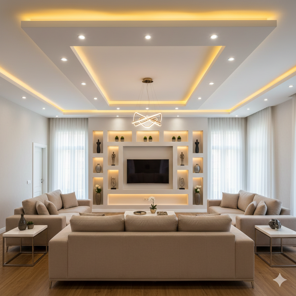 - سقف کناف با نورمخفی و پلانهای دکوراتیو